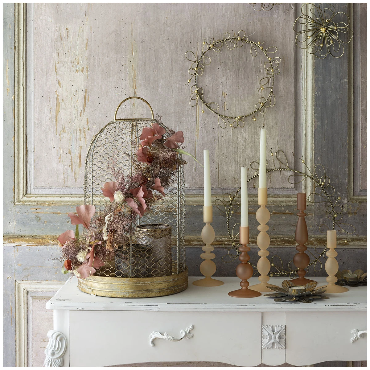 Придайте своему интерьеру нотку изысканности с помощью этого набора из трех золотых подсвечников в форме цветов.